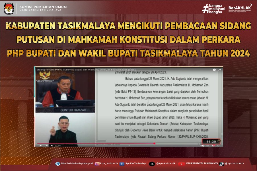 KABUPATEN TASIKMALAYA MENGIKUTI PEMBACAAN SIDANG PUTUSAN DI MAHKAMAH KONSTITUSI DALAM PERKARA PHP BUPATI DAN WAKIL BUPATI TASIKMALAYA TAHUN 2024