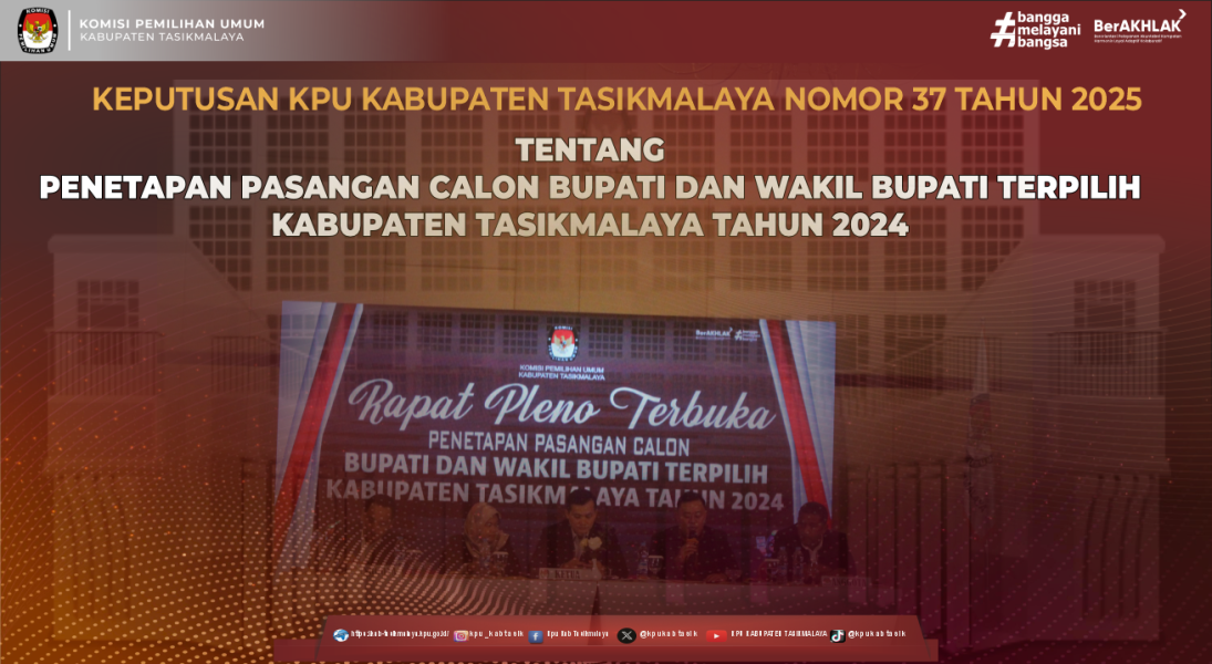 KEPUTUSAN KOMISI PEMILIHAN UMUM KABUPATEN TASIKMALAYA NOMOR 37 TAHUN 2025 Rabu, 28 Mei 2025 13:39 423 Bagikan: Dilihat 423 Kali.