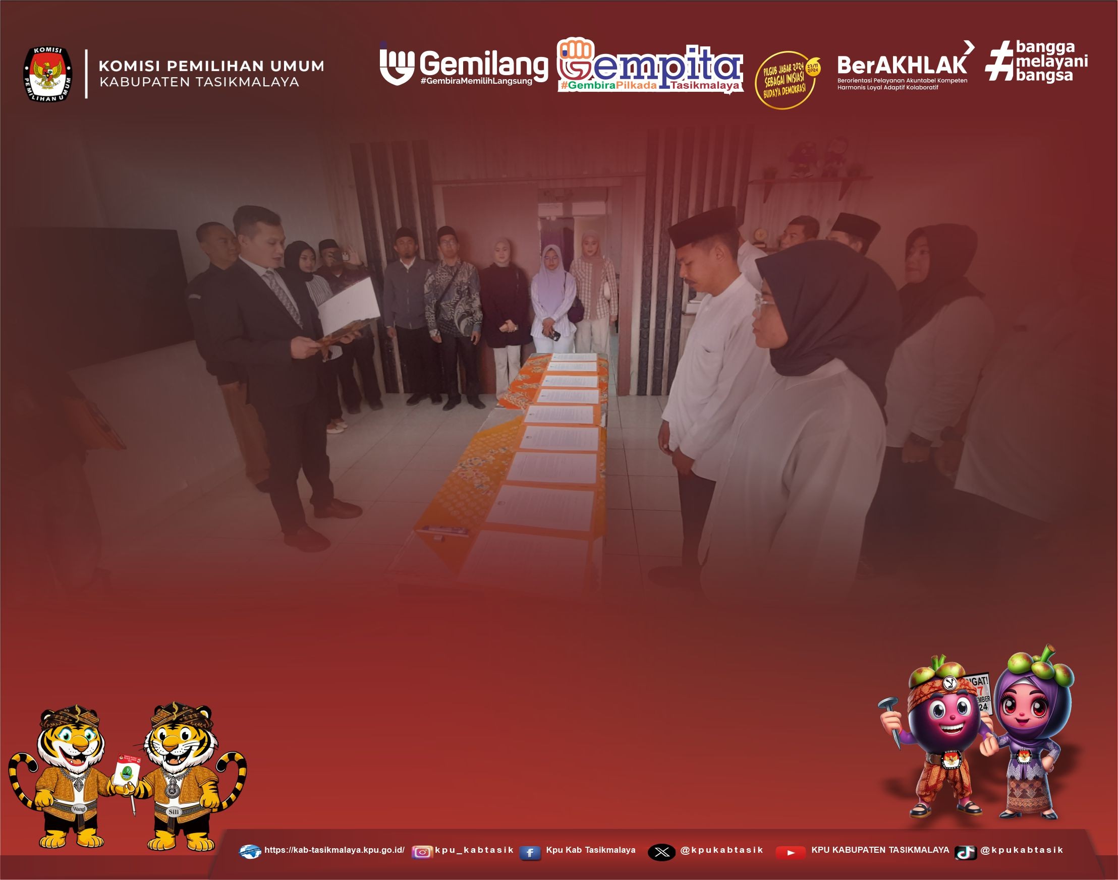 Ketua KPU Kabupaten Tasikmalaya Ami Imron Tamami, S.Pd. melantik 7 badan adhoc di wilayah kerja KPU Kabupaten Tasikmalaya pada Pada hari Rabu, 4 September 2024 di kantor KPU Kabupaten Tasikmalaya. Peserta yang dilantik adalah :