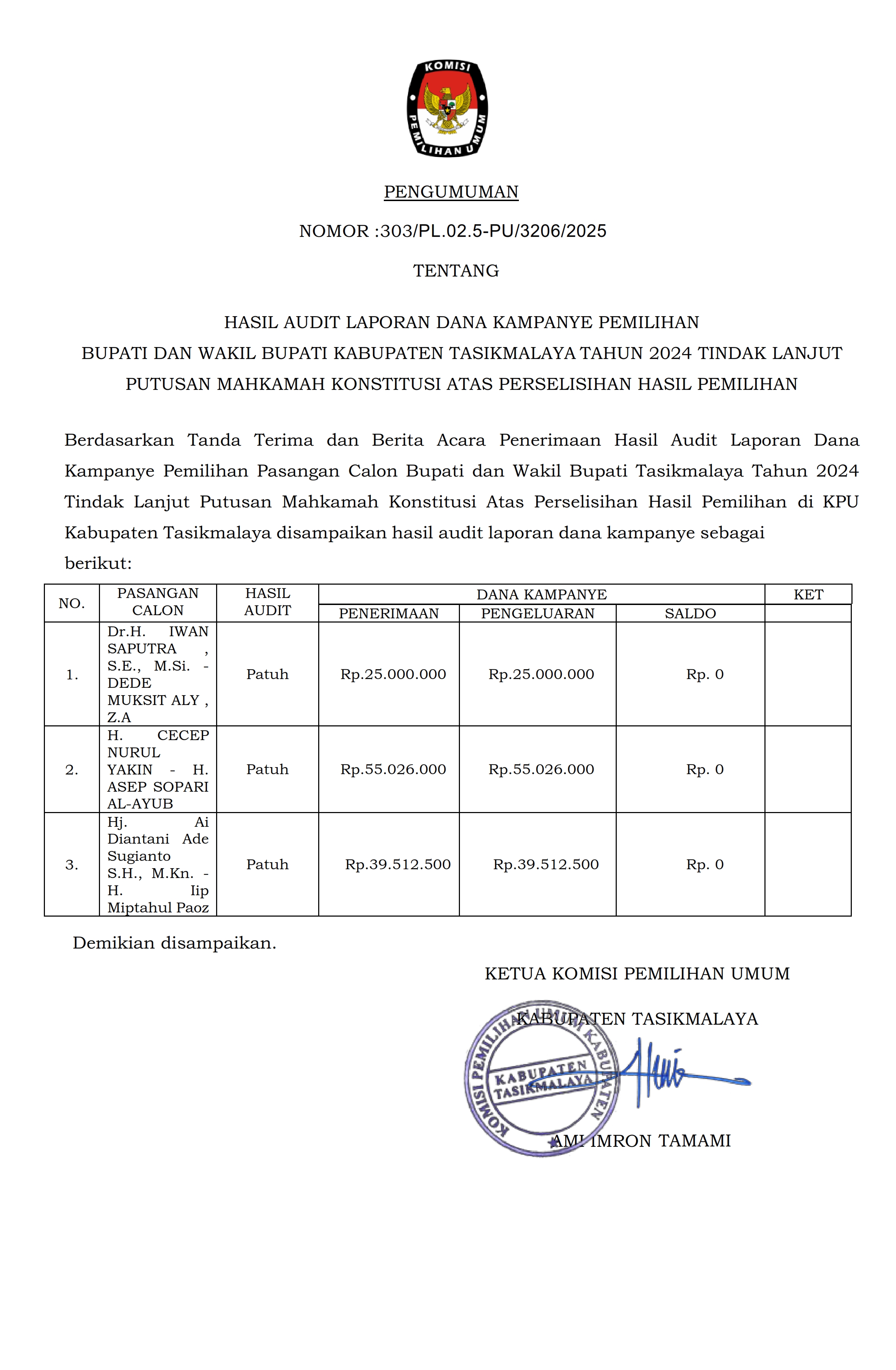 PENGUMUMAN NOMOR :303/PL.02.5-PU/3206/2025