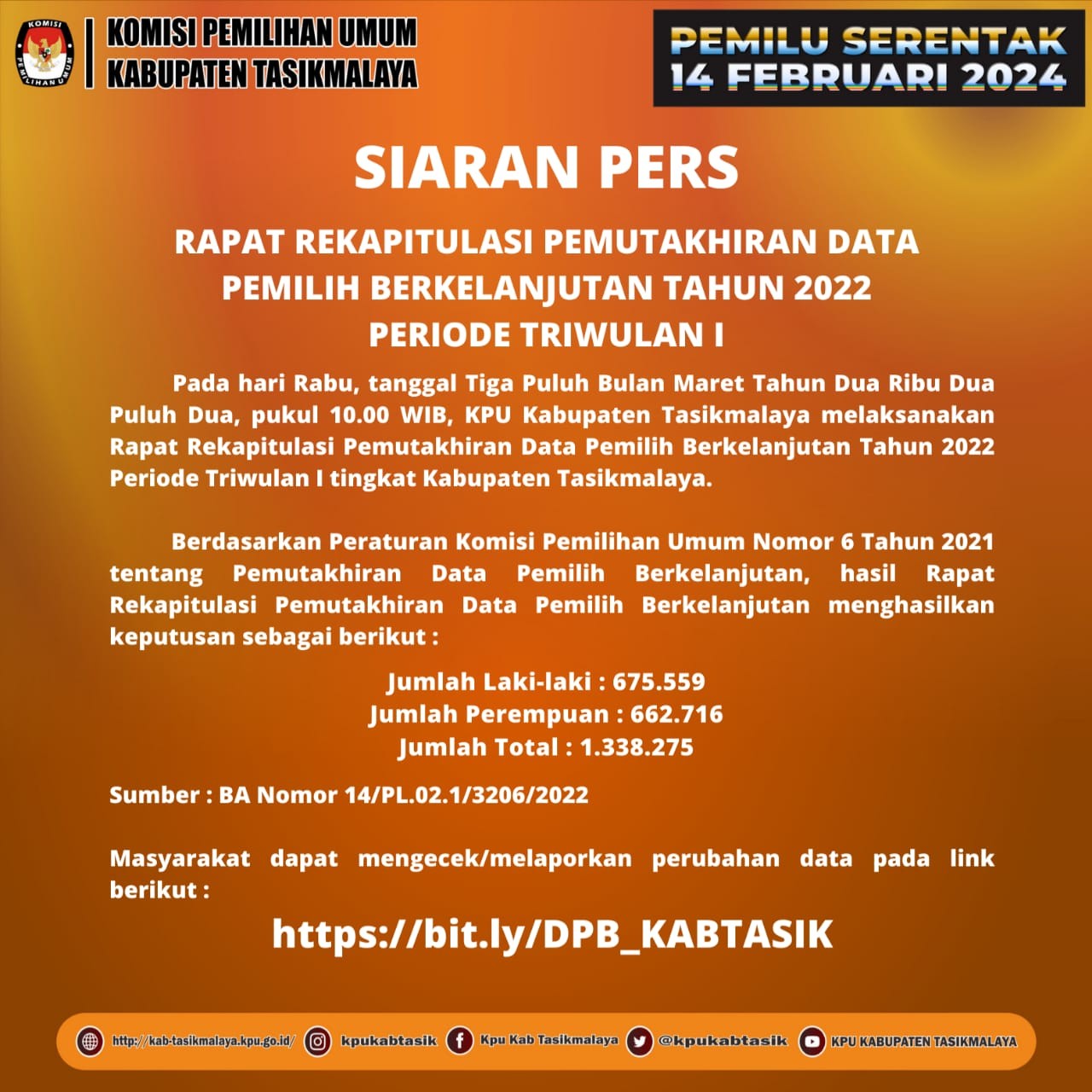 PENGUMUMAN PEMUTAKHIRAN DATA PEMILIH BERKELANJUTAN PERIODE MARET 2022