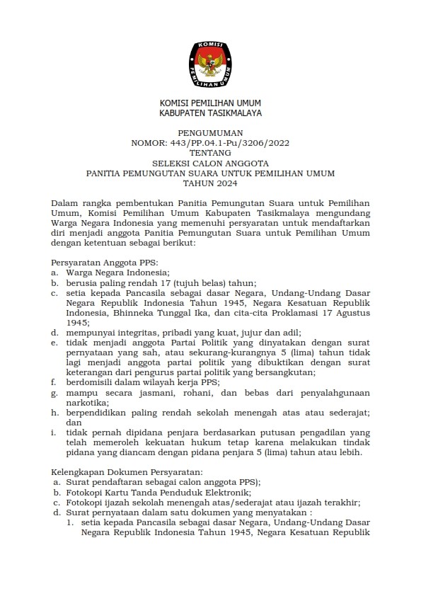 PENGUMUMAN PENERIMAAN CALON ANGGOTA PPS PEMILU 2024 Minggu, 18 Desember 2022 00:11 3590 LINK PENGUMUMAN DAN PENDAFTARAN Bagikan: Dilihat 3,590 Kali.