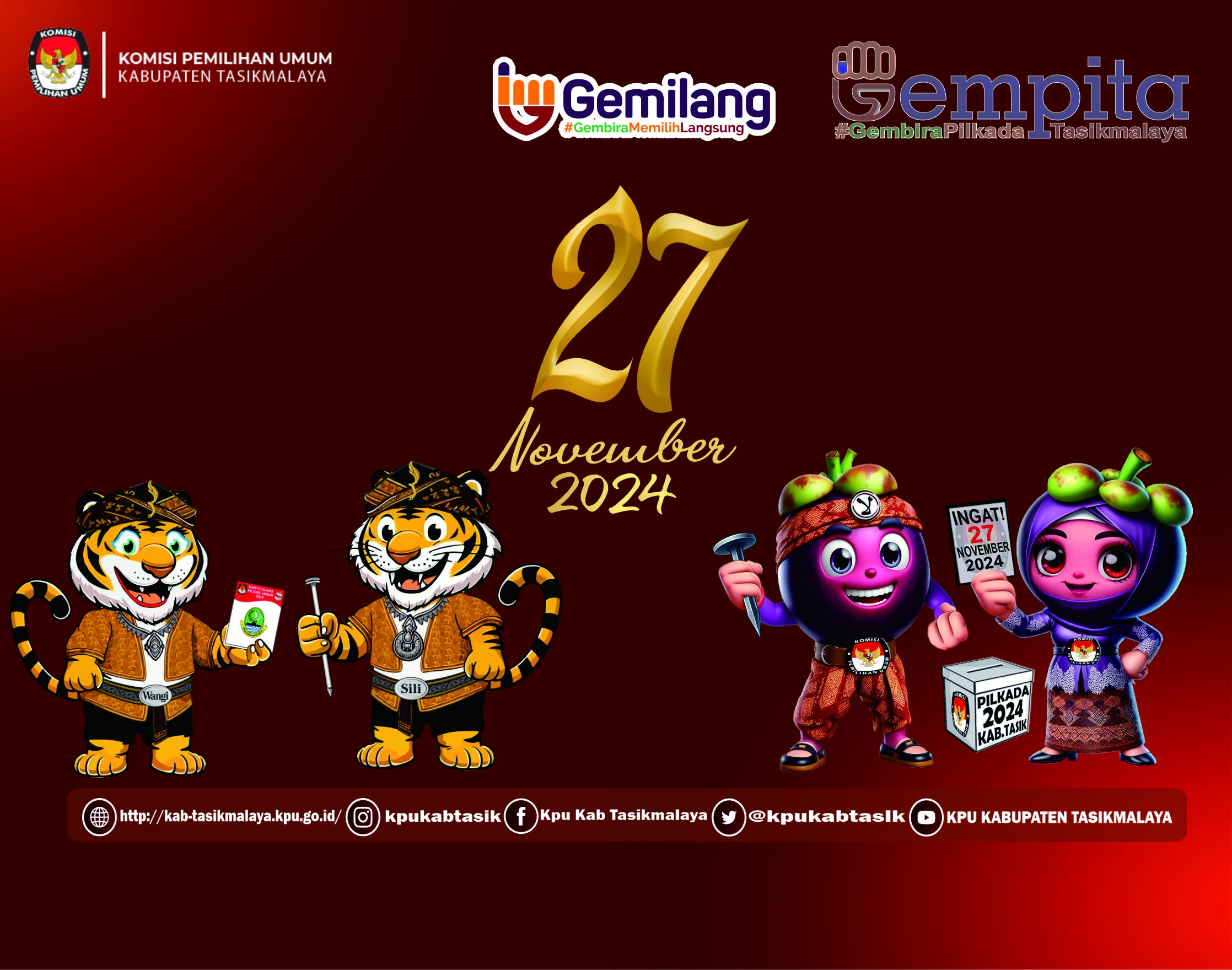PENGUMUMAN TENTANG PENDAFTARAN PASANGAN CALON BUPATI DAN WAKIL BUPATI TASIKMALAYA TAHUN 2024 Sabtu, 24 Agustus 2024 05:50 906 PENGUMUMAN NOMOR : 518/PL.02.2-Pu/3206/2024 TENTANG PENDAFTARAN PASANGAN CALON BUPATI DAN WAKIL BUPATI TASIKMALAYA TAHUN 2024 Bagikan: Dilihat 906 Kali.
