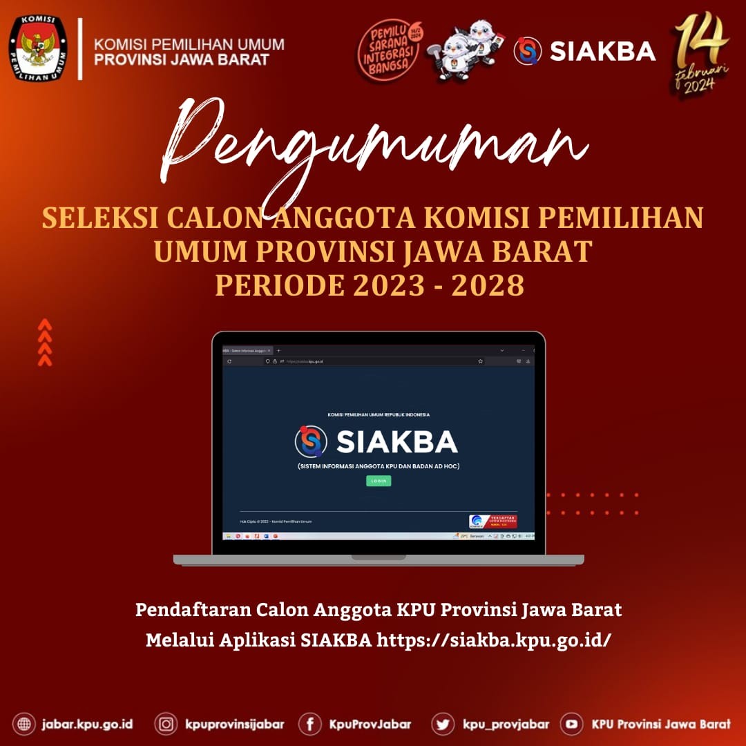 SELEKSI CALON ANGGOTA KPU PROVINSI JAWA BARAT Selasa, 16 Mei 2023 07:00 797 SELEKSI CALON ANGGOTA KPU PROVINSI JAWA BARAT Periode 2023 - 2028 Bagikan: Dilihat 797 Kali.