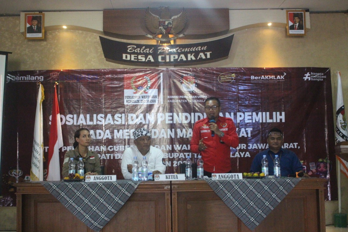 KPU Kabupaten Tasikmalaya mengadakan Sosialisasi Pendidikan Pemilih Pada Media dan Masyarakat pada tanggal 4 November 2024. Pelaksanaan Sosialisasi Pendidikan Pemilih berlangsung di Aula Gedung Desa Cipakat yang berlangsung dari jam 08.00 WIB sampai dengan selesai.