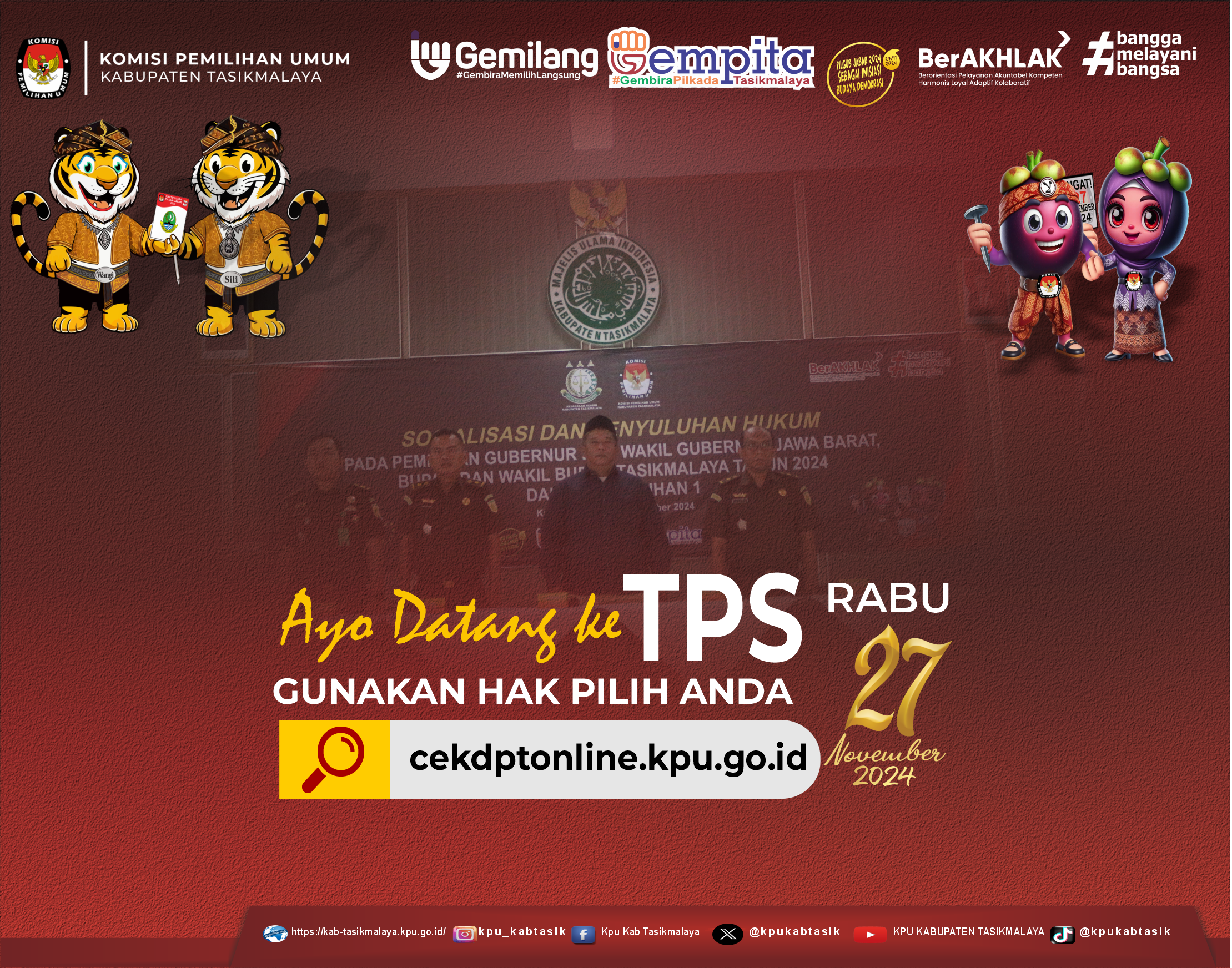 Pada hari selasa, 15 Oktober tahun 2024 KPU Kabupaten Tasikmalaya mengadakan sosialisasi dan penyuluhan hukum pada pemilihan gubernur dan wakil gubernur jawa barat, bupati dan wakil bupati tasikmalaya.